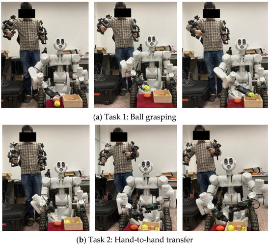 We performed two teleoperation tasks to demonstrate the intuitiveness of the proposed exoskeleton device and the mapping control methods. The experiments are illustrated in Figure 23.
