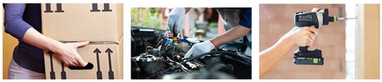 - Collinder, A.; Ekstrand, E. Hand Ergonomics in Early Phases of Production Development. Master’s Thesis, Chalmers University of Technology, Gothenburg, Sweden, 2018. [Google Scholar]