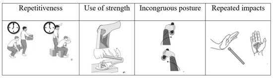 - Sluiter, J.K.; Rest, K.M.; Frings-Dresen, M.H. Criteria document for evaluating the work-relatedness of upper-extremity musculoskeletal disorders. Scand. J. Work. Environ. Health 2001, 27, 1–102. Available online: http://www.jstor.org/stable/40967163 (accessed on 31 March 2022). [CrossRef]