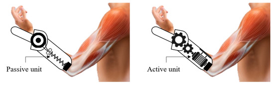 - Higuma, T.; Kiguchi, K.; Arata, J. Low-profile two-degree-of-freedom wrist exoskeleton device using multiple spring blades. IEEE Robot. Autom. Lett. 2017, 3, 305–311. [Google Scholar] [CrossRef]