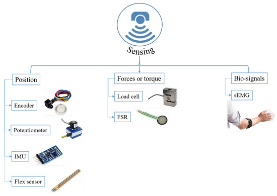 - Tiboni, M.; Borboni, A.; Vérité, F.; Bregoli, C.; Amici, C. Sensors and actuation technologies in exoskeletons: A review. Sensors 2022, 22, 884. [Google Scholar] [CrossRef] [PubMed]