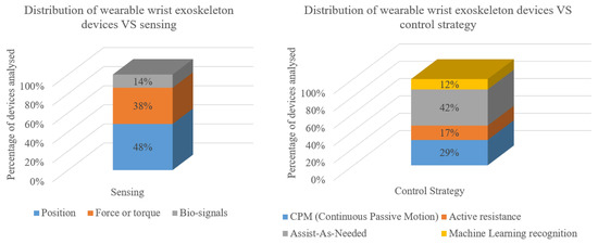 To address these problems, many different devices have been designed over the years. The majority of them are externally grounded and used to perform rehabilitation processes in clinics or at home with the aim of restoring human hand/wrist functionalities and dexterity and muscular strength after an injury has occurred. The lack of portability limits their usefulness for unstructured environment, outdoor applications, at work, or in everyday life activities where the users should be able to move freely. Here there is the need for fully wearable devices in which the entire system (including actuators, electronics, and batteries) is attached to the human body. Devices of this format can provide assistance, augmentation or rehabilitation wherever needed and at any time, and this can be extended to prevention of injuries at work, where wearable and portable wrist exoskeletons are highly desired. However, only a few are available in the market, and these are mainly focused on the hand by improving the user’s grasping strength (e.g., Carbonhand® and Ironhand® by Bioservo Technologies). Therefore, there is a very real and current need for specific wearable and portable devices conceived to mitigate wrist-related problems [25].