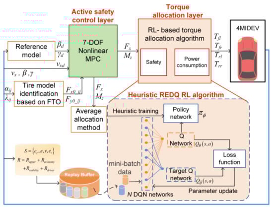 - Deng, H.; Zhao, Y.; Nguyen, A.T.; Huang, C. Fault-Tolerant Predictive Control With Deep-Reinforcement-Learning-Based Torque Distribution for Four In-Wheel Motor Drive Electric Vehicles. IEEE/ASME Trans. Mechatron. 2023, early access. [Google Scholar] [CrossRef]