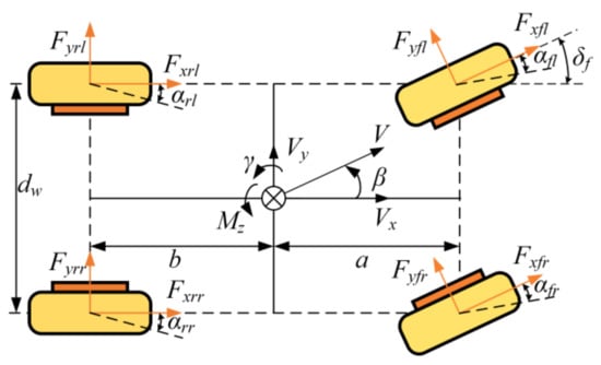 - Zhang, H.; Liang, J.; Jiang, H.; Cai, Y.; Xu, X. Stability Research of Distributed Drive Electric Vehicle by Adaptive Direct Yaw Moment Control. IEEE Access 2019, 7, 106225–106237. [Google Scholar] [CrossRef]