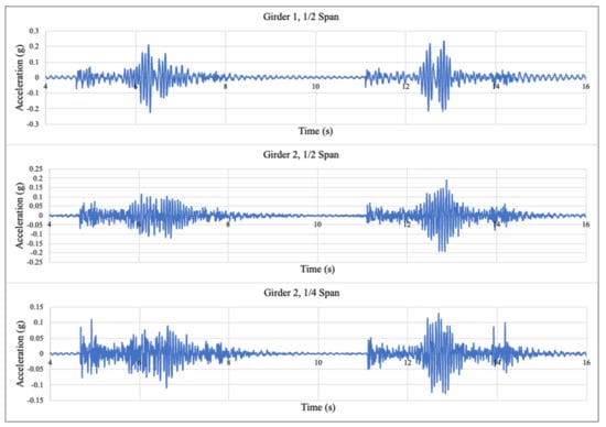 5.1. Accelerations Measured at Test Locations of a Bridge
