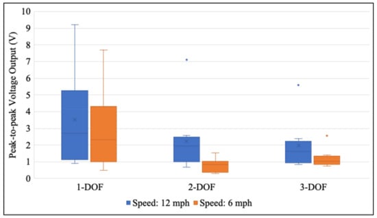 Voltage outputs from cantilevers under loading speeds of 12 mph and 6 mph.