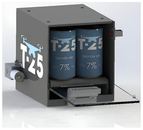 As mentioned before, the payload of the proposed UAV system serving as a delivery drone is represented by beverages such as beer. Beers are transported by a crate fastened to the structure of the UAV system, as shown in Figure 6.