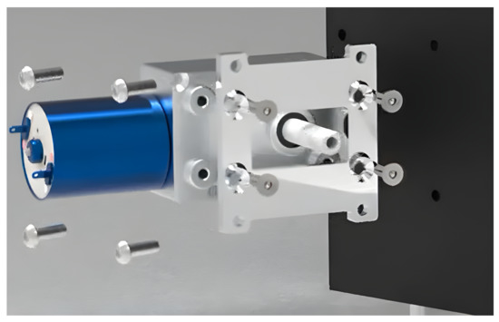 The process for fixing the case is facilitated by two aluminum plates, which are placed with one inside and one outside, and then secured with screws. To avoid interference problems, the motor is the first component to be assembled in the case. The plate represented in Figure 8 is the one on the outside. Another equal plate is collocated in the same position inside the case.
