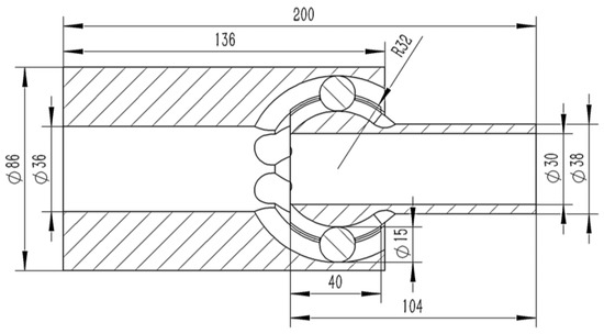 Table 1 shows the structural components of the ball cage flexible drilling pipe. The structure is composed of three parts: upper three connections, lower three connections, and flexible joints. Moreover, there are flexible joints in the middle of the structure, which are identical. Each part is connected by a constant velocity universal joint that contains ball cage and ball keys. The length of the flexible joint is designed according to the curvature radius of the hole and the size of flexible drilling pipe, and it can be described as [24,26].
