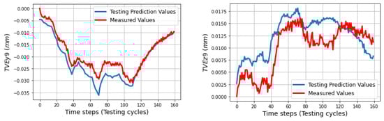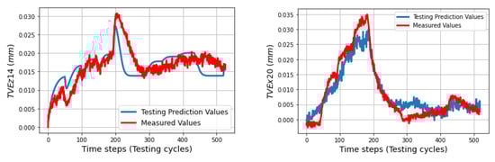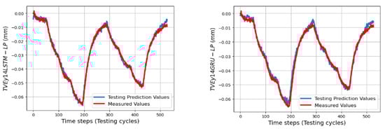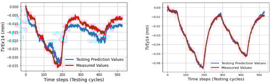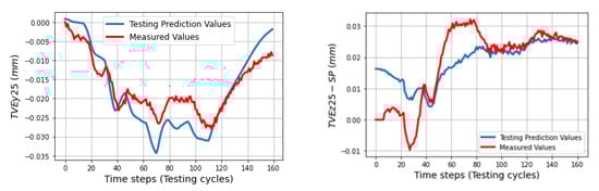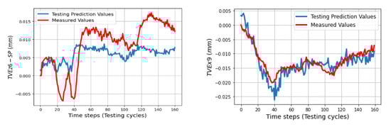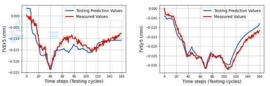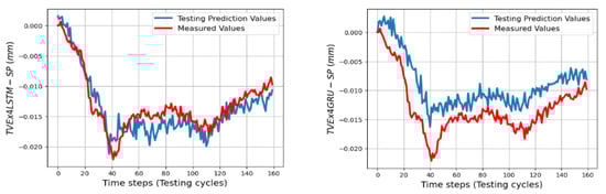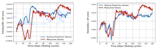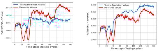 Figure 29 with RMSEs = 2.2 μm, 2 μm and 2.4 μm, 4.4 μm, respectively. For TVEz5, 6, SGRUs performs better with RMSEs = 3.2 μm and 6.6 μm, while SLSTMs have RMSEs turnoff 4.8 μm and 7.5 μm. Both the SLSTMs and SGRUs proved that they have potential to predict the sequence data. The results in this section partly prove the ability of SLSTMs and SGRUs to predict TVEs at the 40 h process with different activities and inputs.