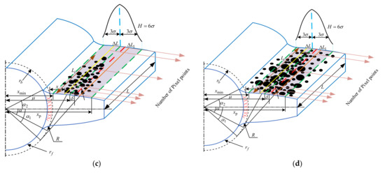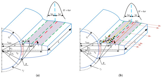 where Li is the length of pitting spread along the tooth width. Besides, for the normal distribution function in Equation (25), the 3σ criterion is used to describe the distribution areas of pits in this paper. Therefore, μ and σ can be calculated as follows: