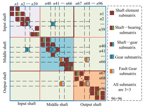 The motion differential equation matrix of the gear meshing element can be expressed in the following form: