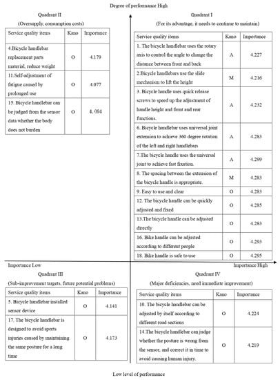 (4) Comprehensive analysis of IPA and KANO models for various services of bicycle handlebars.