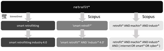 Despite applying this last filter, the number of documents was still high and covered several sectors. Therefore, to focus more attention on the sector of interest, it was decided to add additional keywords to “retrofit*” to target the search on production and industrial sectors.