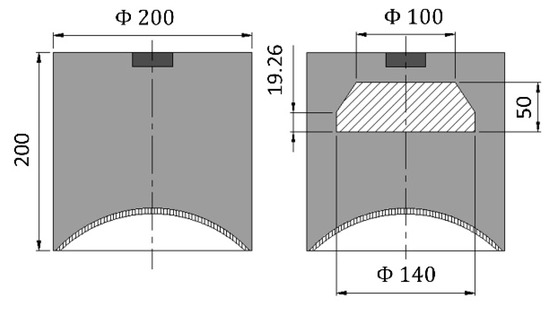 To obtain two forms of JPCs, two different types of shaped charges are designed whose structural difference is with and without wave shaper. The wave shaper in a shaped charge can change the detonation wave shape and collapse angle, and its existence can improve the jet velocity and the velocity gradient from the jet tip and tail to some extent [21,22,23].