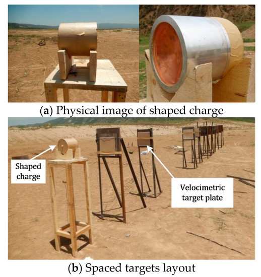 Furthermore, many researchers have studied the weakening effect of jet breakup on continuous penetration [18,19,20]. However, the phenomena of jet breakup and drift during SCJ penetration, especially in the case of penetrating multi-layer targets with large spacing have been rarely discussed, and the relevant penetration theories are yet to be enriched. Therefore, based on previous research, this paper analyzes the process of JPC penetrating multi-layer targets with large spacing using experimental and numerical simulations and discusses the influencing factors of the penetration process. The penetration test of a large-caliber-shaped charge is performed, and the experimental results of the penetration hole diameter and penetration depth are given. A new segment-based simulation method is proposed for the analysis of the breakup and drift of the JPC segments or rod penetrators. Then the simulation results are compared with the experimental results of JPC penetrating multi-layer targets with large spacing to verify the accuracy of the numerical method.