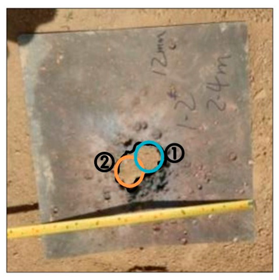 Holes in the second target by penetration of JPC-1. (Diameter of hole ①: 55 mm; Diameter of hole ②: 52 mm).