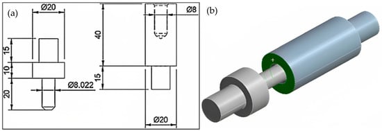 The finite element model for the press-fit joint was created using Ansys 2021, with the dimensions and shape of the shaft/hub fit shown in Figure 2a. This fit corresponds to the J10 (O = 0.022 mm) specification as per the reference literature [27]. The joint in this study follows the H7/s6 standard, which is a medium drive fit used for permanent assembly, commonly found in drive gears and sleeve bearings. Due to the difficulty in disassembling this type of joint without causing damage, it was selected for the current study. The material chosen for this study was S235 structural steel, which is a low-carbon manganese steel. S235 steel was selected for its common use in manufacturing, particularly in the automotive industry where remanufacturing is important. It has good weldability and machinability and is relatively inexpensive, making it a cost-effective choice for remanufacturing processes. Using this material allowed for a realistic and relevant analysis of the challenges associated with disassembling parts for remanufacturing.