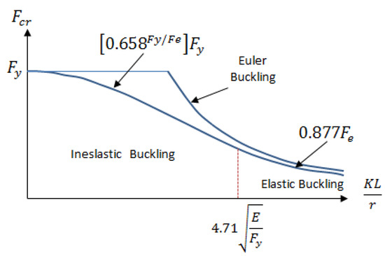 Figure 2 shows the comparison plots of the AISC-360 standard and Euler’s buckling of elements subjected to compression loads, the former of which is more conservative.
