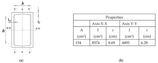 Figure 7 shows the cross-section profile built up (a) and a table (b) containing the inertia and gyration radius using the formulas of Steiner’s theorem; and gyration radius; .