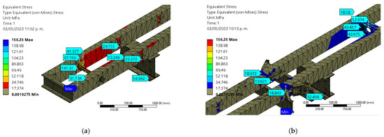 Figure 10 shows the structural bar and beam stress values for a 12 m-long specimen with a tensile load of 300 kN. The beam system is built using the same C-profile.