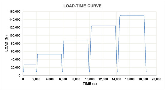 Figure 17 shows another stress-strain test performed on the overhead conductor according to CFE E1000-18 (page 17); this is done in several steps, starting with a preload of 15% up to 85% of its RTS; with 15–20% increments, each new load returns to the preload level. The step duration is 3600 s.