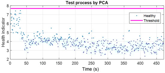 Anomaly detection results when the machine runs under healthy conditions based on the PCA and SAE methods.