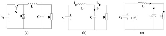 Analysis of Buck converters and the operating states: (a) The Buck converters; (b) Switch in on state ; (c) Switch in off state .