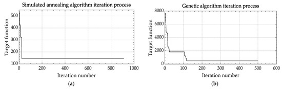 Iteration results: (a) Simulated annealing algorithm iteration result; (b) Genetic algorithm iteration result.