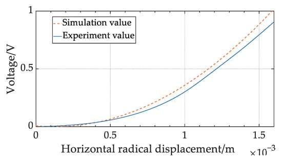 The horizontal displacement distance of the lifting structure was adjusted, while all other variables were kept constant. This replicates the variation in horizontal displacement distance caused by the application of pressure to various geometries of elastic steel pipes. This results in variations in the resulting tension, shaft torque, and the amount of power generated by the generator. The process of positive power generation is chosen to evaluate the device’s power generation based on the voltage of the generator. The horizontal displacement ranges between 0 mm and 1.6 mm. Figure 21 displays the outcomes. More power is generated when the horizontal displacement of the lifting mechanism of the experimental gadget increases. When horizontal displacement reaches 1.6 mm, the generator voltage is 0.87 V. The simulation results correspond to the alteration of the experimental structure’s appearance, and the simulation value is marginally greater than the experimental value. The generator’s simulated voltage at 1.6 mm horizontal displacement is greater than 1 V.