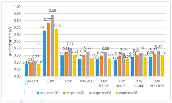 In addition, we tested the efficiency of the TSR-Net system on the NVIDIA Jetson AGX Xavier platform. We tested the prediction times of the TSR-Net system in eight different power modes for four sequences 00, 02, 04, and 06. Figure 3 shows the statistical average prediction times for the different power modes.