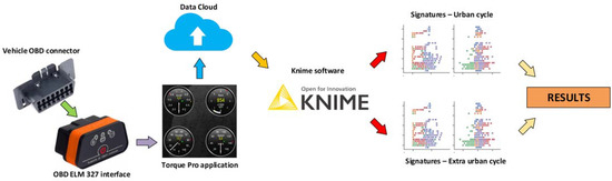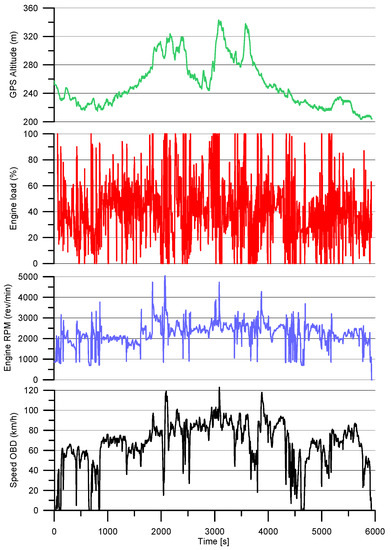 The individual components and systems in vehicles are usually interconnected via a CAN network (Controller Area Network). Thanks to the CAN bus, it is possible to exchange information quickly and safely between electronic control units in vehicles. This approach reduces the amount of cabling in the wiring harness and avoids the duplication of multiple sensors that are very often used by different systems. A lot of the information circulating in CAN networks in vehicles is used by the on-board diagnostics (OBD) system [44]. Thanks to the presence of the OBD socket in vehicles, it is possible to view selected operating parameters of the drive systems available in the OBD system [44]. Data read in real-time can be analyzed in real-time or sent to a data cloud for archiving, and, later, undergo offline analysis.