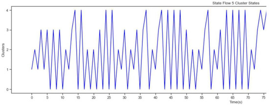 Then, the trajectories of transition states were generated (Figure 6), corresponding to the five-cluster state classification. Calculations leading to the determination of the trajectory of the process in the state space allowed the probability of transitions between individual states to be determined as well as the probable distribution of the time spent in individual states.