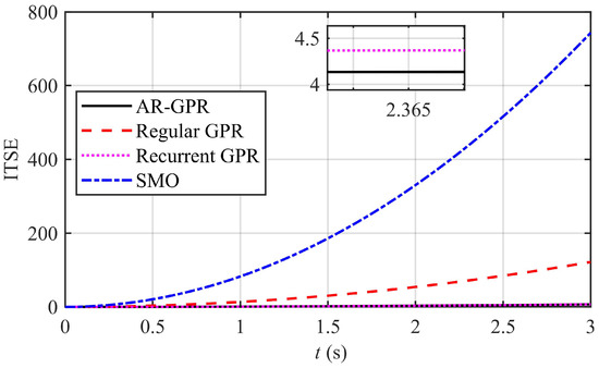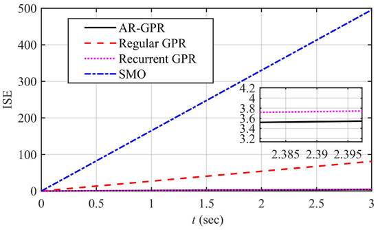Some of the vital performance evaluation parameters are ISE and ITSE. The ISE and ITSE for the proposed observers are shown in Figure 7 and Figure 8, respectively. The ISE and ITSE for the proposed autoregressive GPR is minimum and nearly reaches zero. These performance indices validate the accurate speed estimation capability of the proposed technique.
