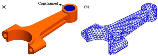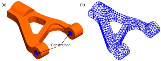 Vehicle suspension arm model: (a) geometric model (b) mesh.