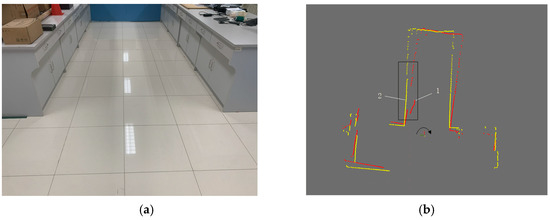To assess the impact of mitigating motion distortion in the LiDAR point cloud on obstacle detection and SLAM fusion, an experiment was conducted in the environment shown in Figure 17.