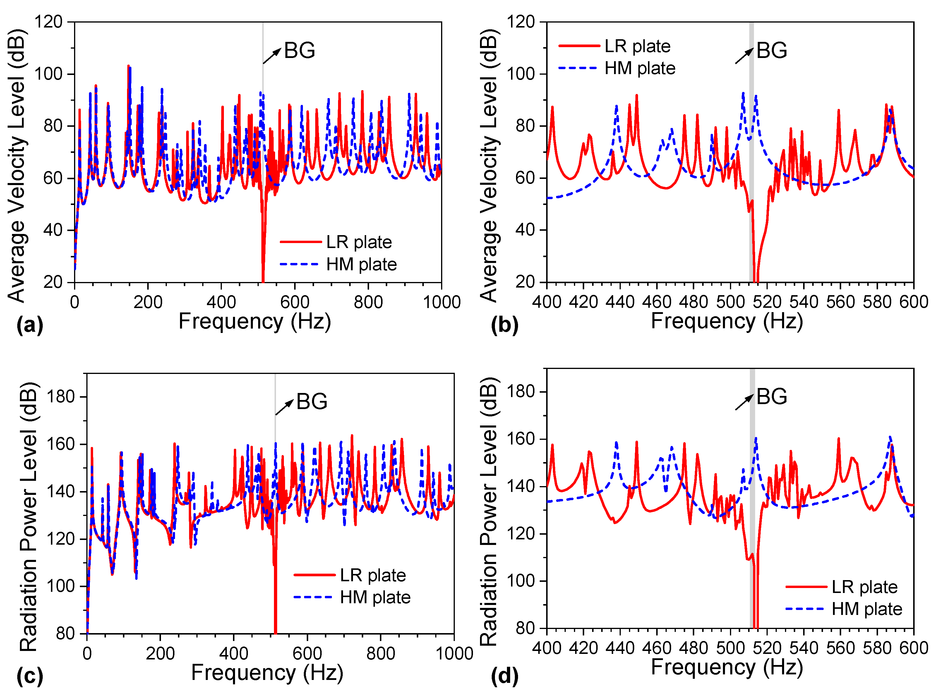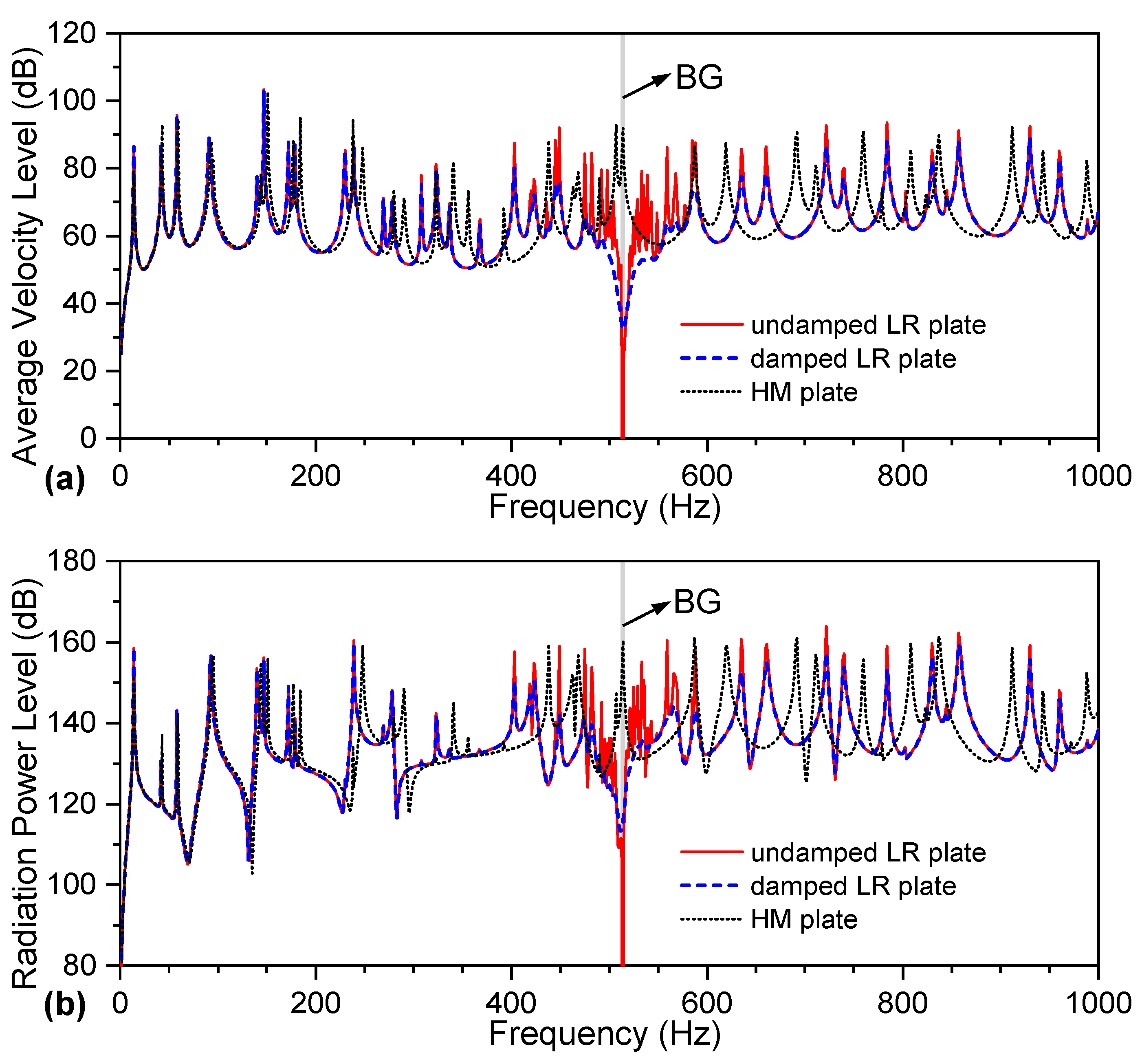- Qin, Q.; Sheng, M.P.; Guo, Z.W. Low-frequency vibration and radiation performance of a locally resonant plate attached with periodic multiple resonators. Appl. Sci. 2020, 10, 2843. [Google Scholar] [CrossRef]