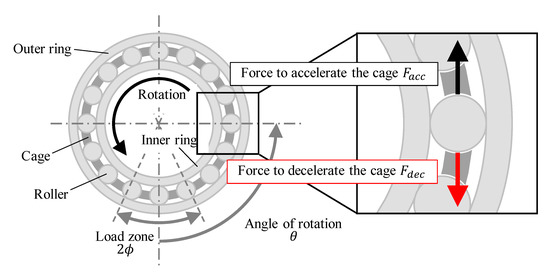 - Suzuki, D.; Takahashi, K.; Itoigawa, F.; Maegawa, S. Contact forces between roller and cage pocket in cylindrical roller bearings (Consideration based on dynamic behavior between roller and cage). Trans. JSME 2022, 88, 22-00153. (In Japanese) [Google Scholar] [CrossRef]