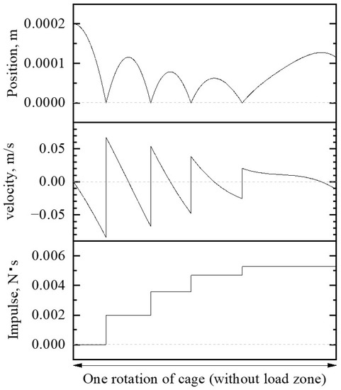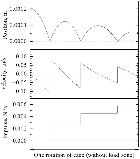 - Only the translational velocity of the roller changes when the roller and the cage make contact (the angular velocity of the cage is constant at a geometrically determined value.).