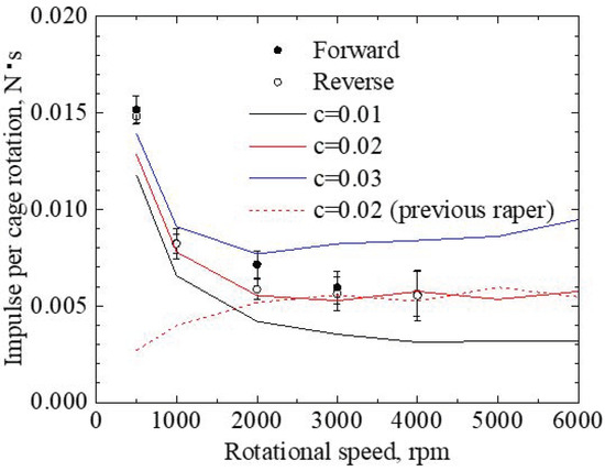 - The volume of cage wear is considered to be proportional to the impulse caused by contact, so a method was proposed to calculate this impulse. In this method, a model consisting only of a roller and a cage was constructed, and the movement of the roller relative to the cage was calculated. Using this method, the impulse caused by the contact was determined and compared with the measured results. The calculated results of the impulse were in close agreement with the measured values. Based on this, the analysis model in this paper is reasonable.