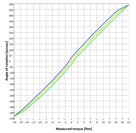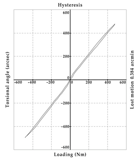 | No. | Type BR/Serial No. | Lost Motion [Arcmin] | Hysteresis [Arcmin] | Natural Frequency Radially—Torsion [RPM/Hz] | Natural Frequency Axially—Tipped [RPM/Hz] |