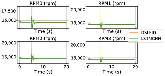 According to the results presented in Table 12, the LSTMCNN model stands out as the best-performing network architecture. It demonstrates superior flight performance in terms of the F1 and Q functions. The F1 function measures the desired time response, considering parameters such as settling time (Ts), overshoot (Os), and steady-state error (sse). The Q function evaluates the actuator control effort.