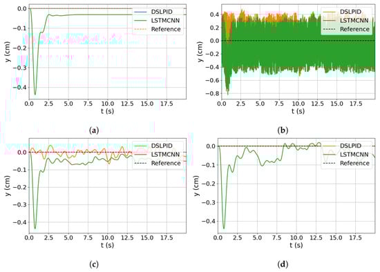 In the disturbance rejection experiment (Section 4.3.3), both controllers maintained stability in the presence of sudden disturbances. However, the DSLPID controller outperformed the LSTMCNN controller based on metrics such as settling time, overshoot, and steady-state error.