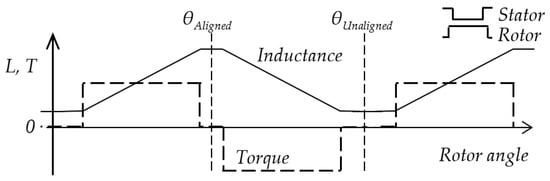 where is the phase inductance. The linearized shape of the inductance and torque profile of the motor is shown in Figure 1 for equally wide stator and rotor poles. The origin of the x-axis is in an unaligned rotor position θUnaligned with the lowest value of the inductance. The highest inductance value is in the aligned position θAligned. The phase current generates positive torque in the region of positive inductance change. After that region, the current should drop to zero, and the next phase will generate the torque for smooth rotation.