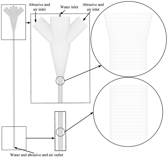 - Hou, R.; Huang, C.; Zhu, H. Numerical simulation of multiphase flow field in abrasive waterjet machining. Int. J. Abras. Technol. 2013, 6, 40–57. [Google Scholar] [CrossRef]