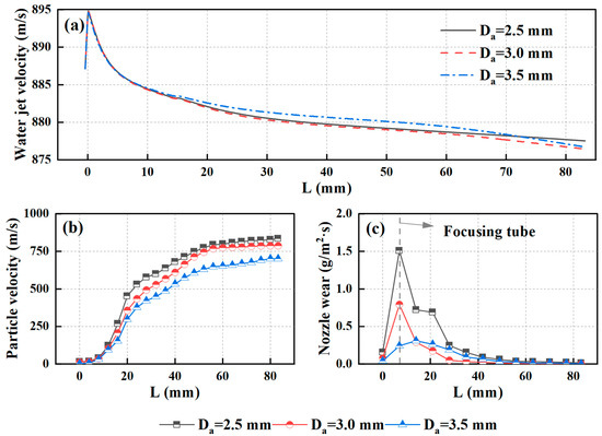 - The size of the abrasive inlet tube affects the initial velocity of the particles, and the outlet velocity of the particles is affected by the initial velocity. By using a smaller abrasive inlet tube size (Da = 2.5 mm), the final velocity of the particle phase can be increased by 16%.