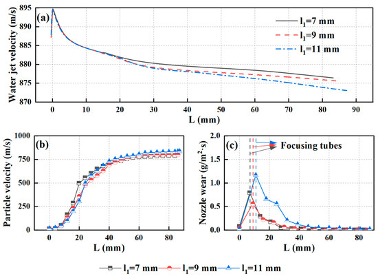 - The size of the mixing chamber affects the velocity of the particles entering the focusing tube, with a smaller mixing chamber width resulting in a 6% lower outlet velocity of the particles compared to other models, while a larger mixing chamber length results in a 7% higher acceleration efficiency of the particles compared to other models.