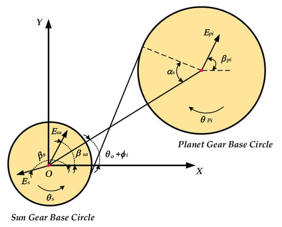 Assuming the eccentric assembly error of the sun gear as , the generated equivalent error along the mesh line can be written as follows: