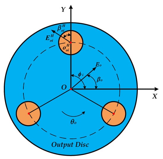As is presented in Figure 8, the eccentric error of the hole in the output disc is , and its components and in the X-axis and Y-axis can be yielded as follows:
