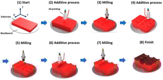 - Li, L.; Haghighi, A.; Yang, Y. A novel 6-axis hybrid additive-subtractive manufacturing process: Design and case studies. J. Manuf. Process. 2018, 33, 150–160. [Google Scholar] [CrossRef]